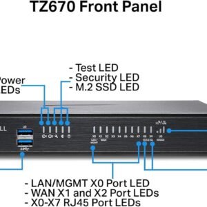 SonicWall TZ670 provides scalability and reliability for expanding network requirements. It supports integrated Wi-Fi for secure wireless connections, reducing the need for additional hardware. Additionally, centralized management allows administrators to monitor and configure multiple sites efficiently from a single dashboard. Advanced analytics and reporting offer insights into traffic patterns, threats, and performance, enabling proactive risk mitigation. Furthermore, firmware updates and threat intelligence are automatically managed, keeping the system current with minimal manual intervention. Therefore, businesses gain both visibility and control over their networks while maintaining strong security.