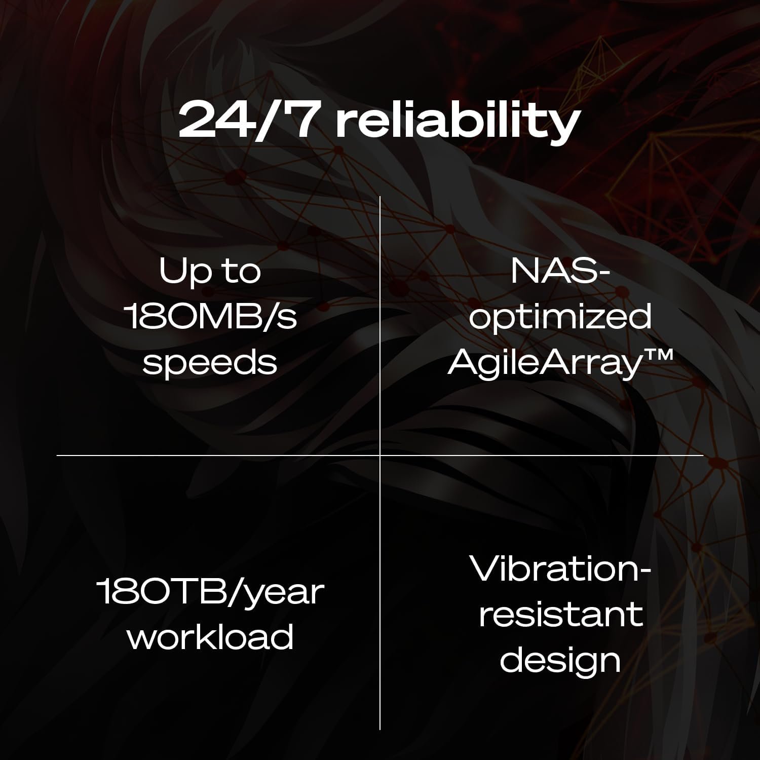 Yes, it is designed for NAS use in home and small business environments. It supports multi-user access and continuous operation, providing reliable storage for media, backups, and shared files. - Can this hard drive run 24/7 without performance issues?