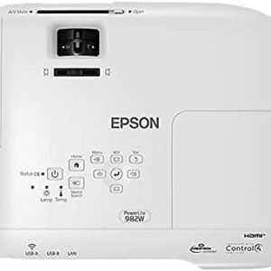 The Epson PowerLite 982W delivers a premium classroom and office projection experience by combining high-resolution widescreen performance with robust connectivity options. This projector utilizes advanced 3-chip technology to produce exceptionally bright and color-accurate images that remain visible even in large, well-lit rooms. Additionally, its flexible installation features and long lamp life make it an ideal choice for institutions seeking a reliable, low-maintenance display solution.
