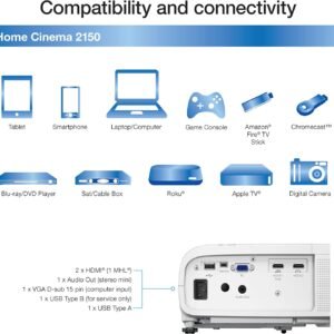 The Epson Home Cinema 2150 serves as a versatile entertainment hub that brings the movie theater experience directly into your living room with stunning Full HD clarity. This projector utilizes proprietary 3-chip technology to produce bright, color-accurate images that remain visible even in environments with moderate ambient light. Additionally, it features built-in wireless capabilities that allow you to stream high-definition content from your favorite mobile devices without needing a tangled mess of cables.