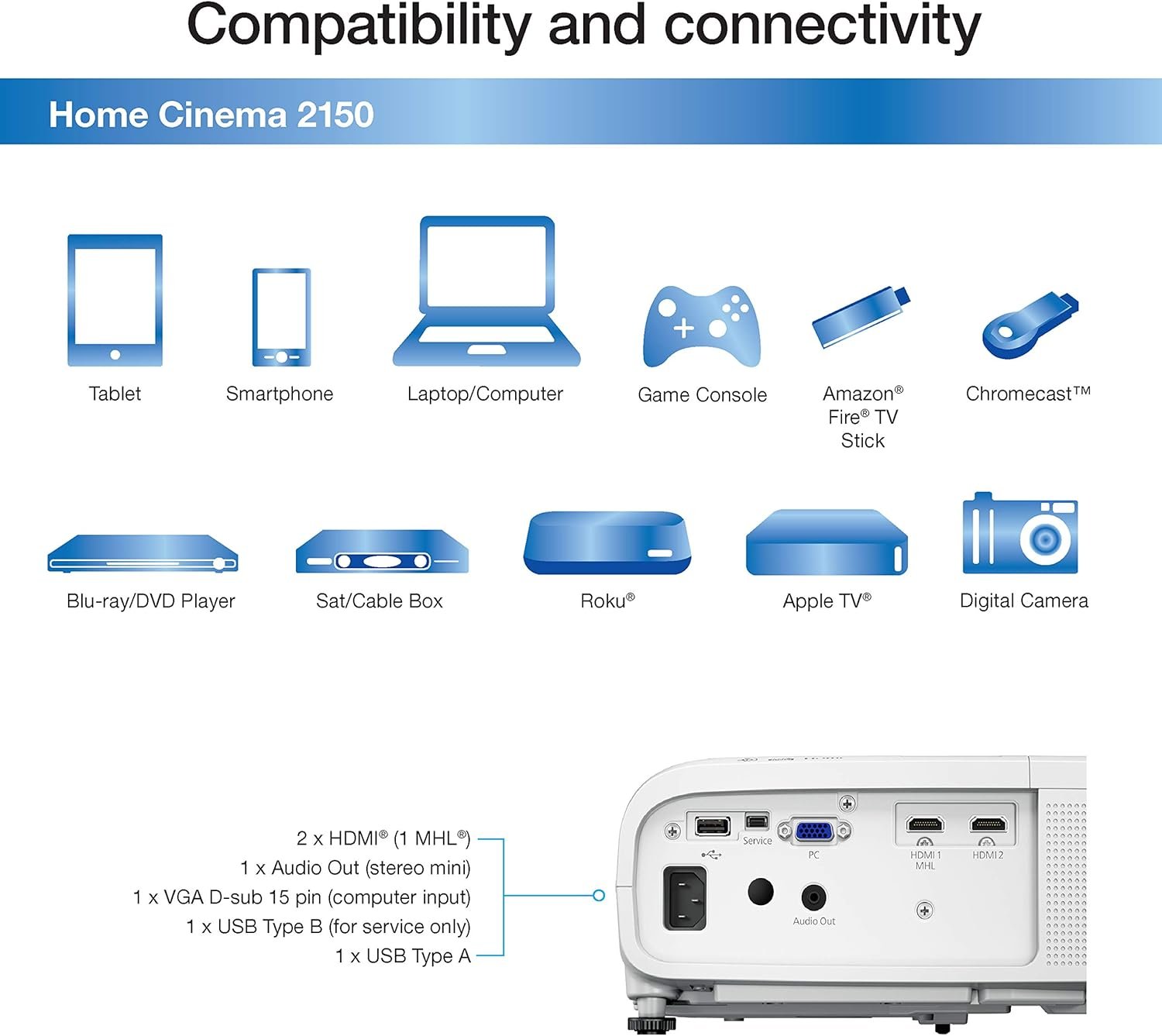 - Can I stream content wirelessly on the Epson Home Cinema 2150?