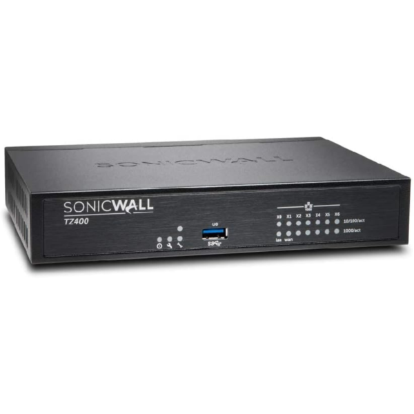 the SonicWall TZ400 (01‑SSC‑0213 + 01‑SSC‑8631) is a next-generation firewall designed for small and medium businesses that require robust network security and high-performance connectivity. it delivers multi-gigabit firewall throughput, secure VPN support, and advanced threat protection while running SonicOS 7.0. additionally, it includes intrusion prevention, gateway antivirus, and content filtering, so administrators can protect networks efficiently while managing multiple devices securely.