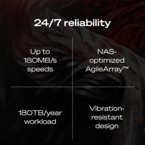 Yes, it is fully compatible with RAID setups. AgileArray firmware and built-in vibration sensors ensure consistent performance and stability in NAS arrays. - What are the benefits of CMR technology and multi-user optimization?