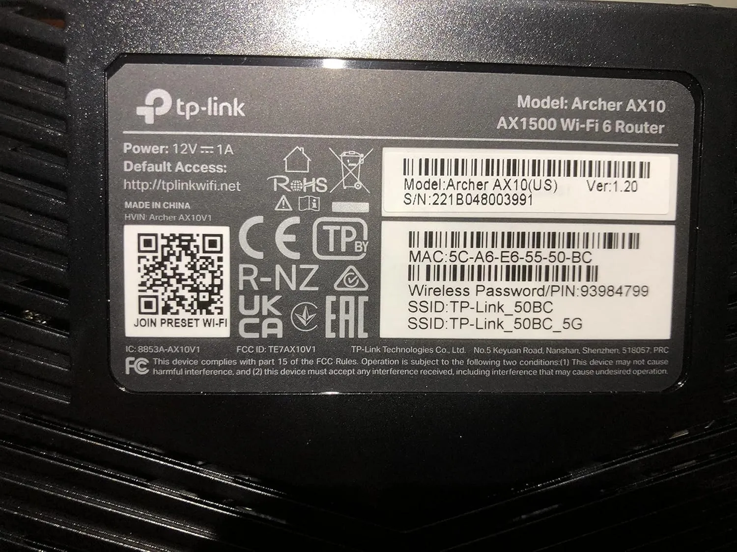 | Wi-Fi Speed | AX1800 (1201 Mbps on 5GHz + 574 Mbps on 2.4GHz) |