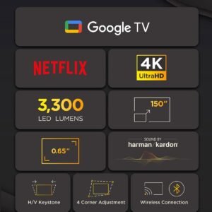 It offers flexibility in placement and installation through keystone correction and corner adjustments. Similarly, smart TV integration and connectivity options allow users to access streaming platforms without additional devices.