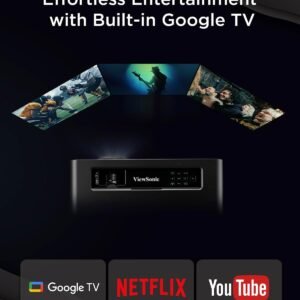 The ViewSonic X1-4KPRO delivers ultra-sharp 4K UHD projection with smart home entertainment integration. Additionally, it supports Google TV, Netflix, and Xbox, providing versatile streaming and gaming options. With 2500 lumens brightness and a compact design, it is suitable for living rooms, media rooms, and dedicated home theaters.
